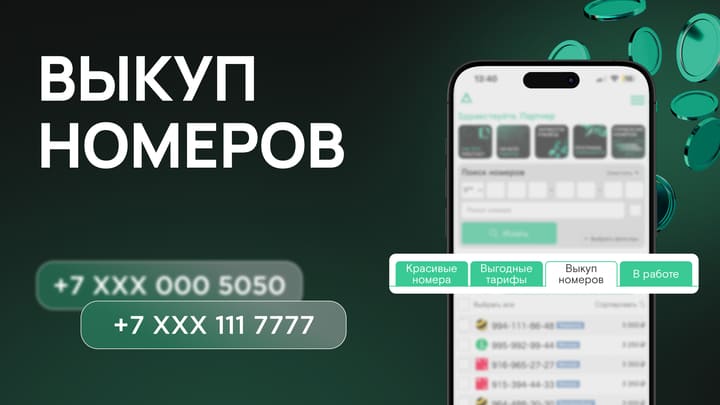 • Доступ к большой базе красивых номеров